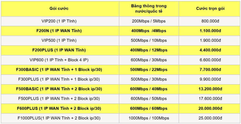 BẢNG GIÁ INTERNET VIETTTEL
