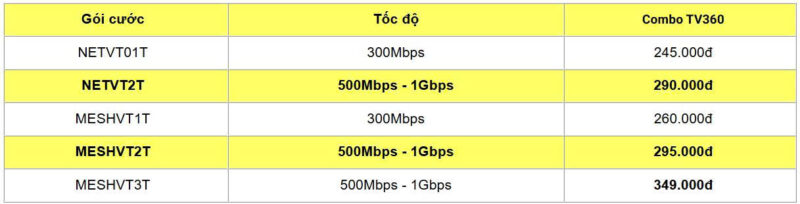 II.GÓI CƯỚC COMBO INTERNET + APP TRUYỀN HÌNH TV360 – GIẢI TRÍ